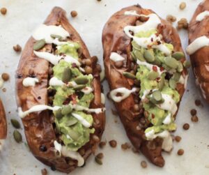 Stuffed Sweet Potato with Lentils & Avocado